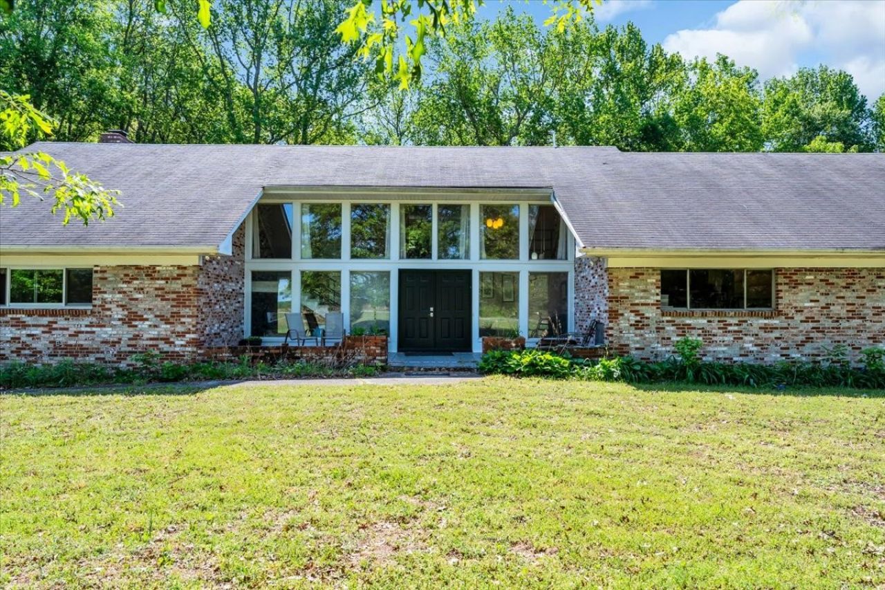 Unique custom home on 5+/- acres in the peaceful countryside of Coffee County. Surrounded by farmland and natural beauty, this spacious property offers privacy, versatility, and room to grow. Featuring mid-century modern character, the home includes 6 bedrooms and multiple bonus spaces. Enjoy wooded acreage with a small stream, abundant wildlife, and outdoor space for relaxing or entertaining.Inside offers a light-filled entry, sunken living room, country kitchen with double ovens, additional living area with stone fireplace, and generous storage throughout. Main-level bedroom and flexible bath options.Property also includes established apple, elderberry, mulberry, wild cherry, and blackberry trees. Recent updates include - Steel Front Doors, various plumbing fixtures, toilets & faucets in tubs, Newer HVAC units, several windows replaced, and roof vents.